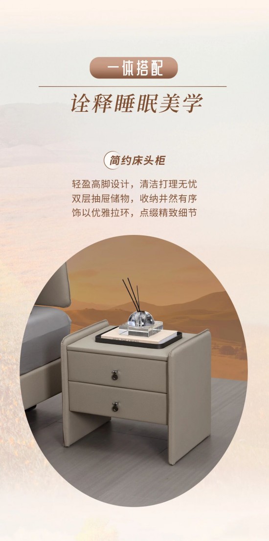 核心提示:空間從容且舒展,輕盈體量,通透視覺,內收高腳設計,床體翩然懸浮清潔無憂,詮釋生活詩意。